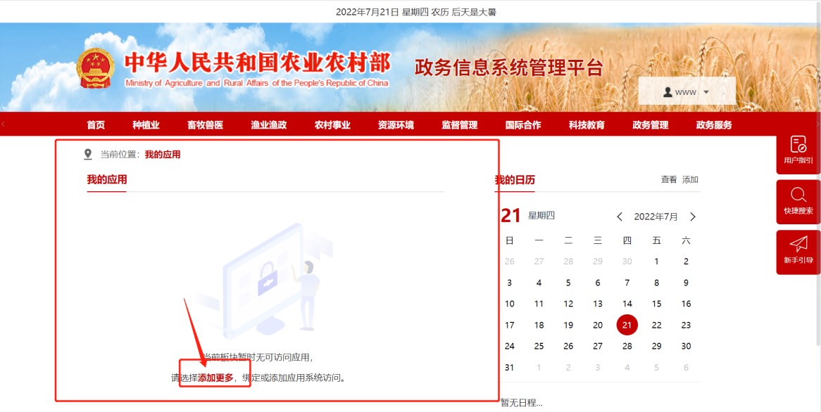 4. 用户登录后出现以下界面。点击“添加更多”,绑定应用系统。