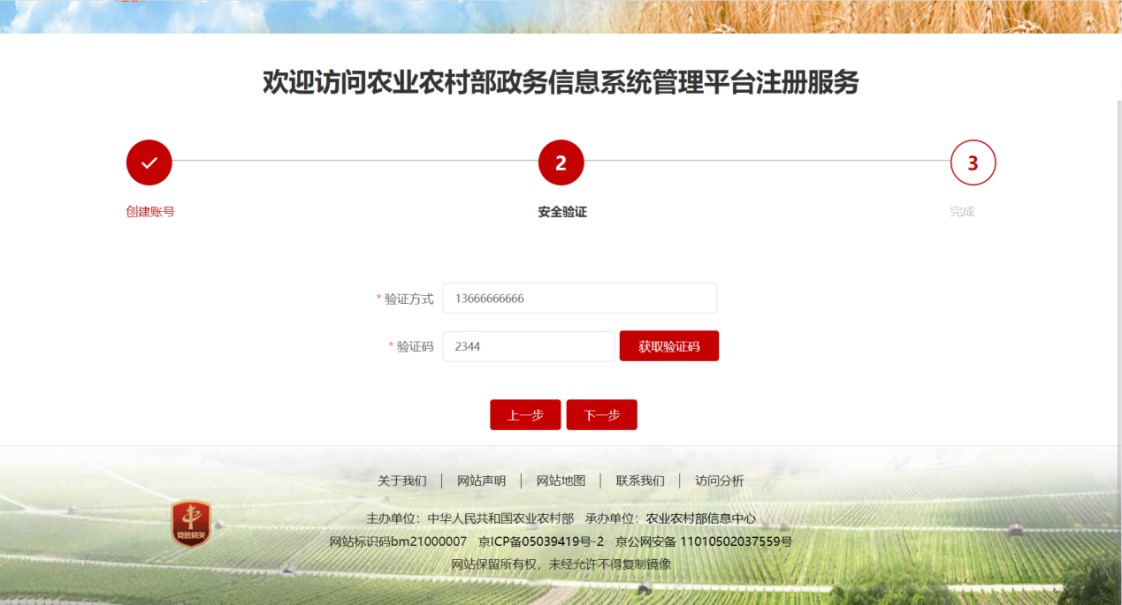 3.验证方式自动带出刚刚录入的手机号,点击获取验证码按钮,如下图。