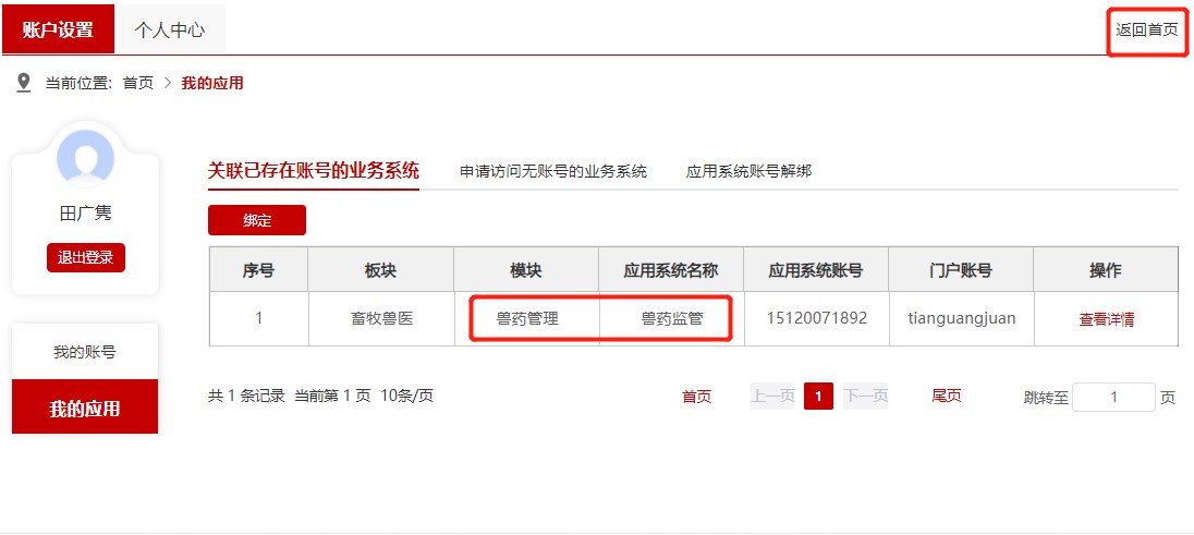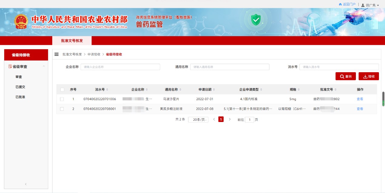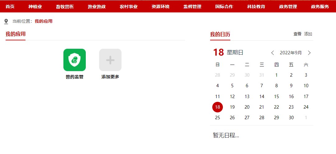 10. 点击上图中的“兽药监管”图标,即可进入系统。如下图。