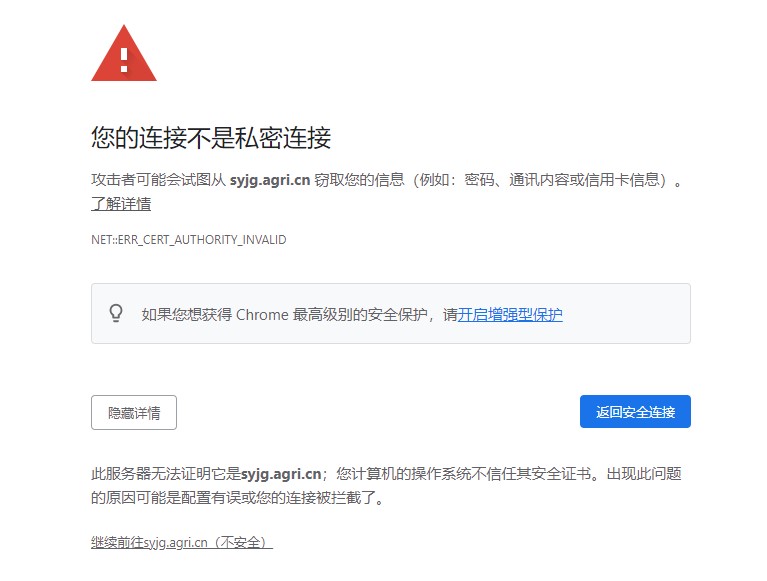 1. 问题:访问系统地址后,提示“您的链接不是私密链接”,请点击高级选项选择继续前往。